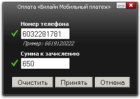 Оплата «Билайн Мобильный платеж»